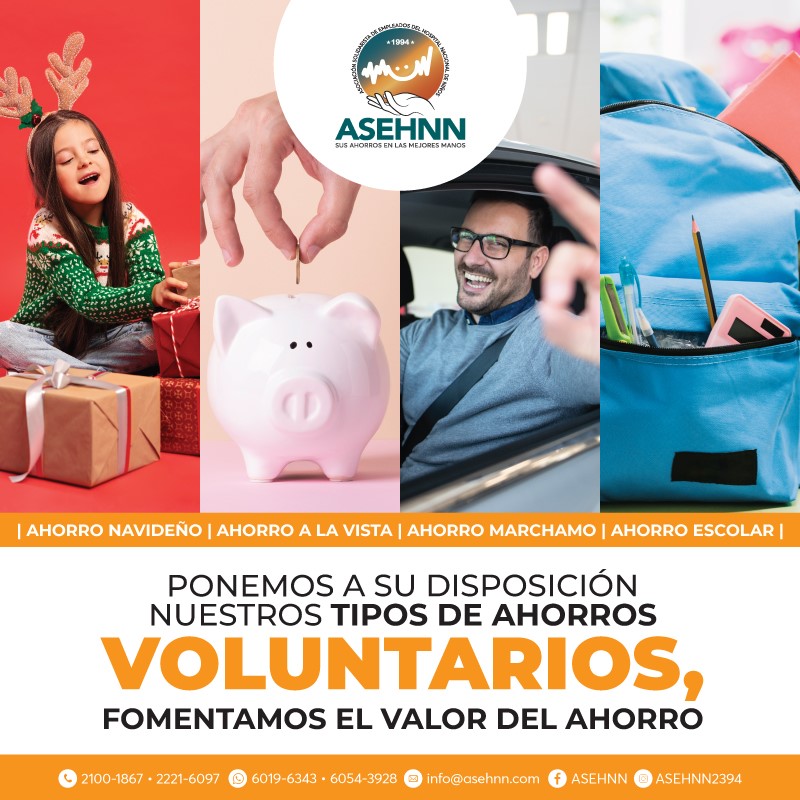 Afíliese, su aporte del 5% sobre su salario bruto mensual, corresponderá a su ahorro obrero y el patrono aportará un 2% de su cesantía, corresponderá a su aporte patronal, y empiece a gozar de los beneficios que le ofrece la ASEHNN a sus agremiados.
